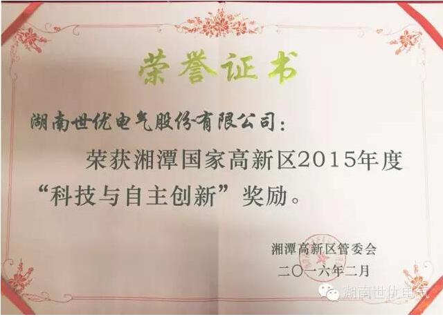 近日,湘潭高新區(qū)召開(kāi)工委經(jīng)濟(jì)工作暨獎(jiǎng)勵(lì)大會(huì),世優(yōu)電氣作為高新區(qū)科技創(chuàng)新重點(diǎn)企業(yè),在此次表彰獎(jiǎng)勵(lì)會(huì)上滿載而歸,憑借“湖南省企業(yè)技術(shù)中心”、“湘潭市財(cái)源建設(shè)先進(jìn)單位”、“湘潭高新區(qū)知識(shí)產(chǎn)權(quán)優(yōu)勢(shì)企業(yè)”3塊金字招牌捧多個(gè)獎(jiǎng)項(xiàng)。