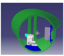 氣流方向如紅色、黃色箭頭所指。加熱時葉片腔內氣流通過加熱后沿紅色箭頭所指方向通過玻璃鋼通風管吹向葉尖位置,氣流從葉尖通過與腹板形成的風道形成完整的空氣循環流動路線,腔內空氣的循環加熱可以有效加熱葉片結冰區域(從12米到45米)并兼顧葉片后緣和葉根段,達到葉片防、除冰效果。